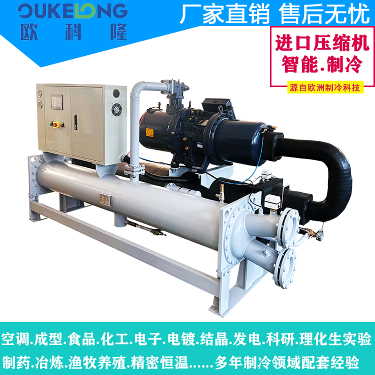 欧科隆120HP螺杆式冷水机是一款超大型工业级制冷设备,专为GWh级新能源产线、重型装备制造等超大规模制冷需求设计。该机型采用创新三螺杆压缩技术,实现120匹(约360kW)制冷量突破,树立工业制冷新标杆。