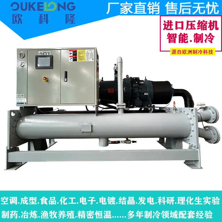 欧科隆制冷150HP水冷螺杆式冷水机是工业制冷领域的旗舰产品,专为超大规模生产和高精度工艺冷却需求设计。该机型采用创新三级压缩技术,实现150匹(约450kW)制冷量,为新能源、半导体等行业提供革命性温控解决方案。