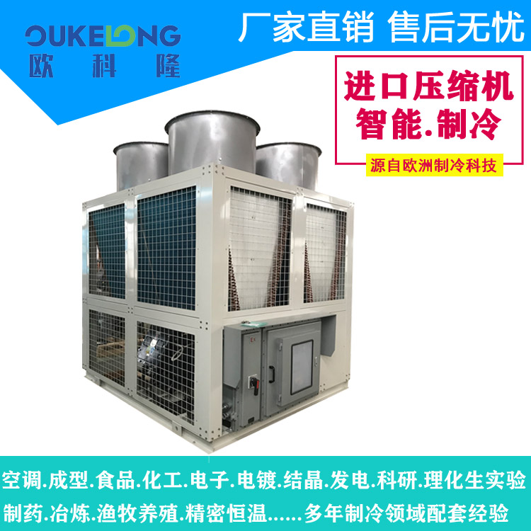 欧科隆Ex风冷螺杆式防爆冷水机组是一款通过国家防爆认证(Ex dⅡB T4 Gb)的专业工业制冷设备,整机防爆设计符合GB3836标准,专为石油、化工、制药等易燃易爆场所提供安全可靠的制冷解决方案。