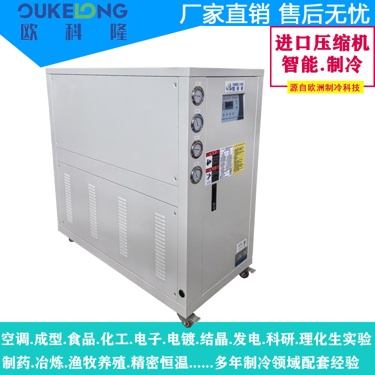 欧科隆10匹水冷式冷水机是一款高效工业级制冷设备,专为中大型生产环境设计,核心特点如下: