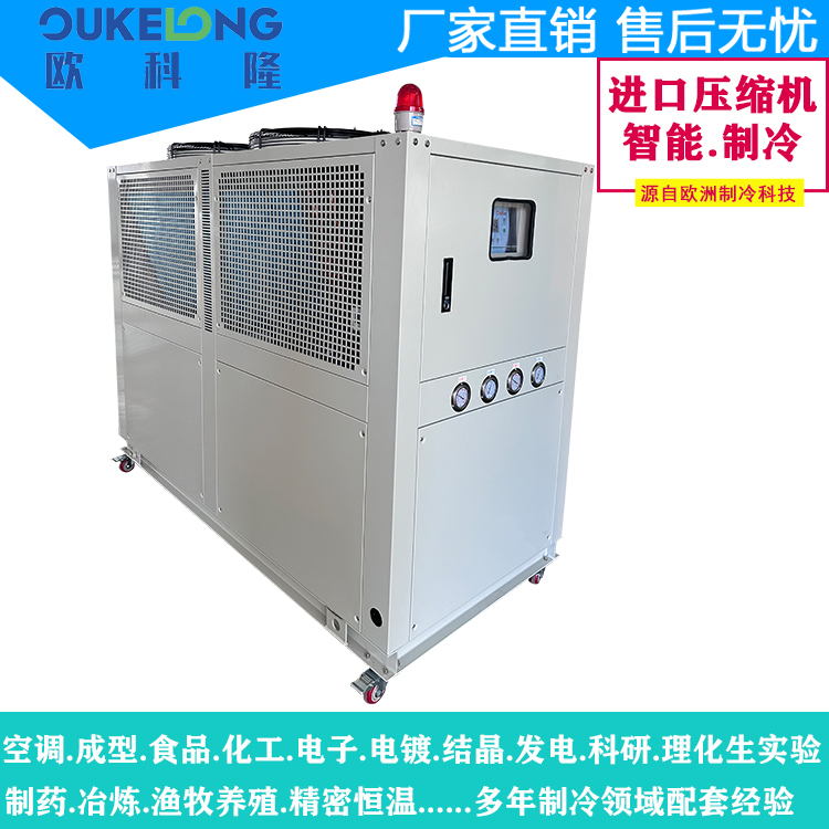 欧科隆12HP风冷式冷水机是一款高效节能的中型工业制冷设备,专为中小型生产线和商业设施设计。该机型采用先进的空气冷却技术,免除冷却塔安装,具有出色的环境适应性和运行稳定性。