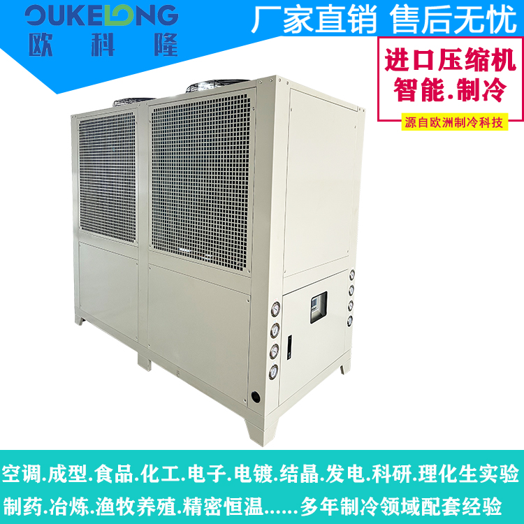 欧科隆制冷科技40HP风冷式冷水机型号:OKL-40AF,是一款大功率工业制冷设备,专为重型制造和连续生产需求设计。该机型采用创新风冷技术,实现40匹(约120kW)强劲制冷量,突破传统水冷系统限制,显著降低安装维护成本。