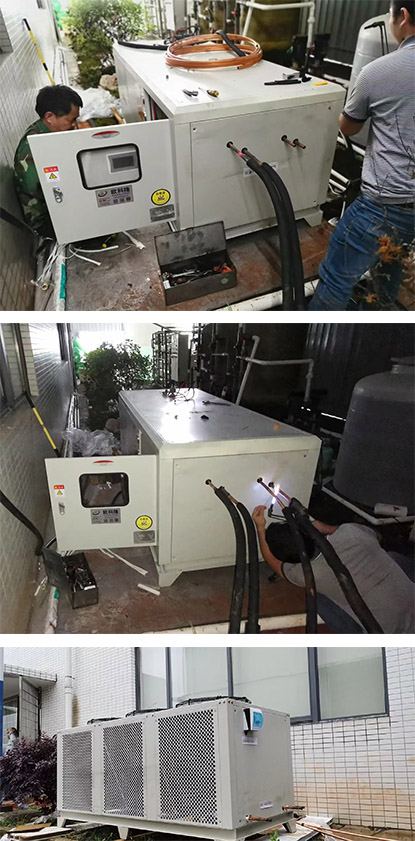 本方案为国内某高校实验室使用的分体式冷水机,为了便于散热,内外机分开放置。我方工程团队上门安装调试,后续使用过程顺畅得到该科研师生团队一致好评。